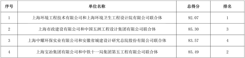 第一中标候选人:上海环境工程技术有限公司和上海环境卫生工程设计院有限公司联合体