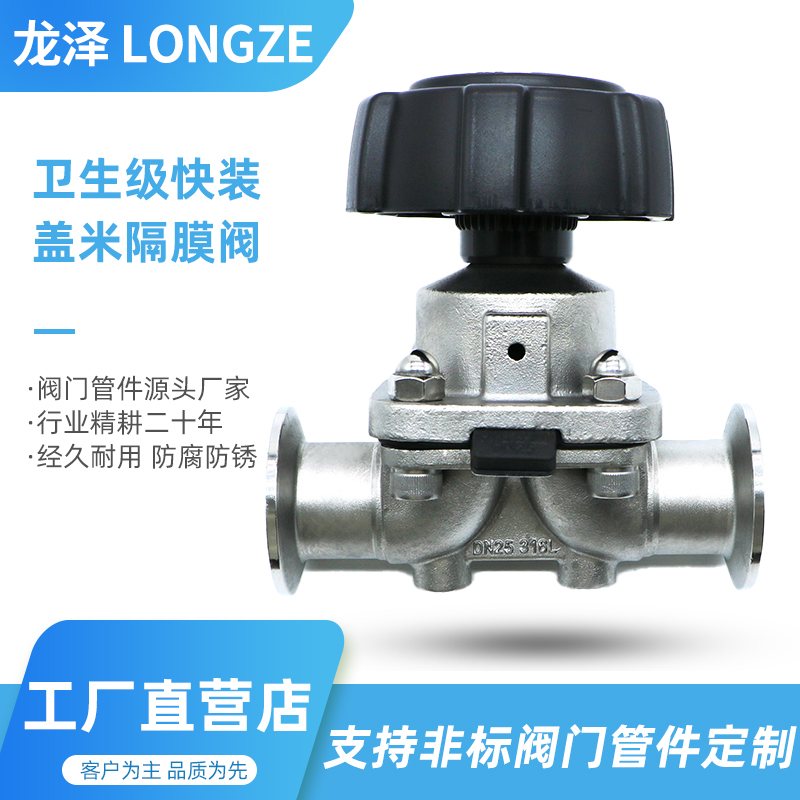 快装隔膜阀316L龙泽不锈钢食品卫生级直通快开卡盘式卡箍膜片阀门