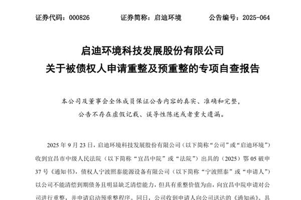 近日,启迪环境科技发展股份有限公司(简称:启迪环境)对是否涉及被深圳证券交易所强制退市行为的情况、控股股东、实际控制人及其他关联方资金占用、对外担保、承诺履行情况等事项进行了全面自查,具体情况如下: 1.截至本报告披露日,公司不存在涉及国家安全、公共安全、生态安全、生产安全和公众健康安全等领域的重大违法行为导致股票可能被终止上市的情...