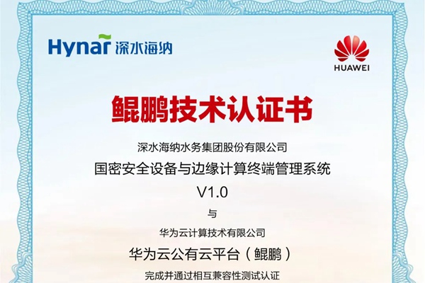 近日,深水海纳水务集团股份有限公司自主研发的国密安全设备与边缘计算终端管理系统V1.0顺利通过华为云公有云平台(鲲鹏)的兼容性测试认证,获得华为颁发的鲲鹏技术认证证书。 华为鲲鹏技术认证是华为推出的一项生态合作伙伴计划,旨在积极推动从芯片到硬件系统,再到软件、服务的整个国产产业链的共建、共享、共赢。 深水海纳集团研发的国密安全设备...