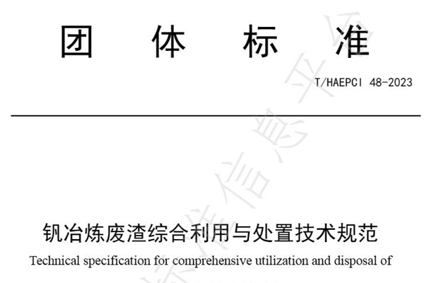 湖南省环境治理行业协会发布T/HAEPCI 48—2023《钒冶炼废渣综合利用与处置技术规范》团体标准,规定了含钒矿物冶炼提钒后,对产生的含钒废渣综合利用与处置的一般要求,包括对含钒废渣的收集、贮存方式,综合利用技术,综合处置技术,管理制度的一般要求。 本标准适用于钒冶炼废渣的综合利用与处置等工作,关于其它种类的冶炼废渣...
