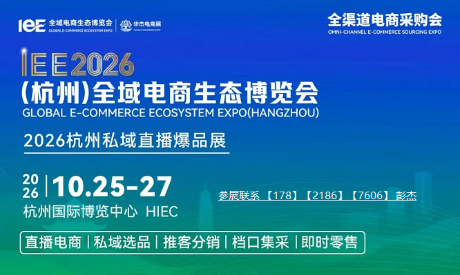 IEE 2026(杭州)全域电商生态博览会 ——全域融合·破局增长 直播电商+私域选品+推客分销+档口集采+即时零售 10月25-27日 杭州国际博览中心 数字浪潮席卷全球,消费结构正在重塑。中国电商已迈入从“渠道竞争”到“生态共赢”的关键变革期。直播...